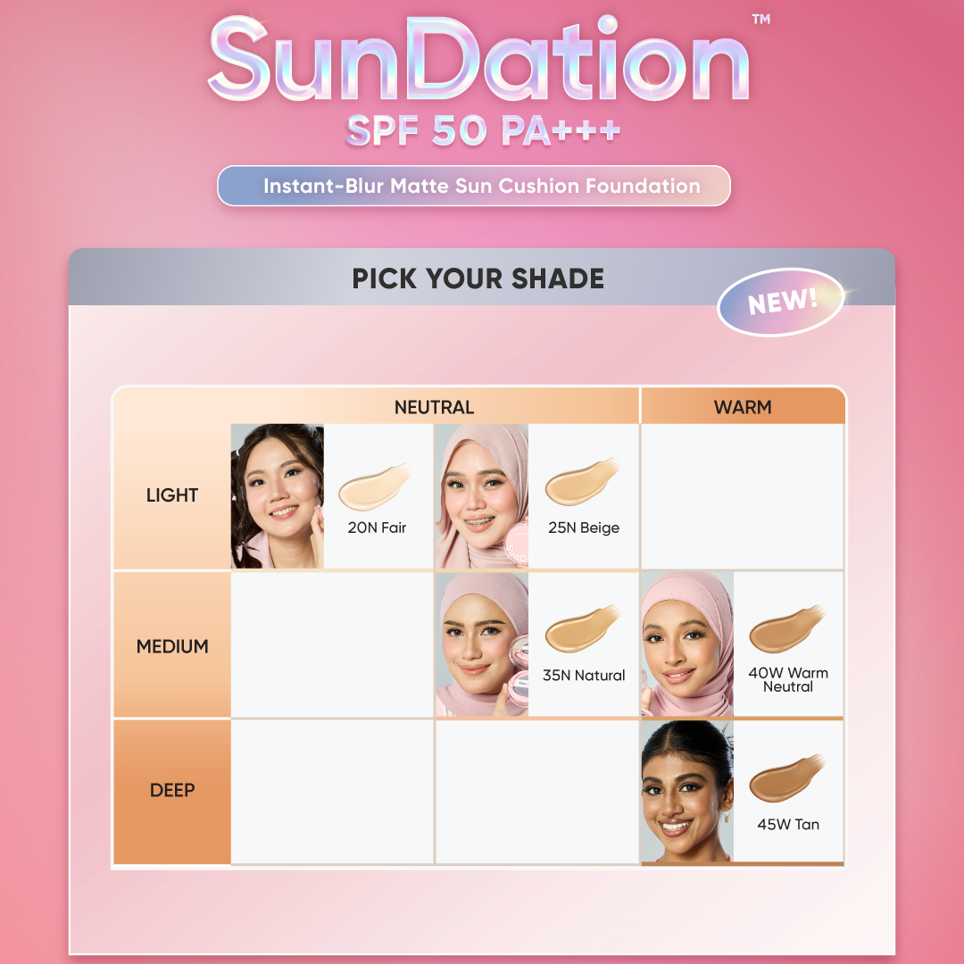 1) Tinted Sunscreen (30ml) × 1 OR SunDation® Cushion Foundation (15g)× 1